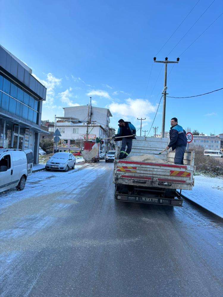 İlçe merkezinde özellikle Beşevler, Üçevler, Konak gibi mahallelerde sıcaklığın eksilere düşmesi nedeniyle buzlanan yollarda olası kazaların önüne geçmek için ekipler sabahın erken saatlerinden itibaren yoğun bir şekilde tuzlama çalışması yaptı. Yolların ulaşıma açık kalması için hummalı bir şekilde çalışan ekipler, 9 tuzlama ve 13 yol açma aracı ile karla mücadele ediyor.