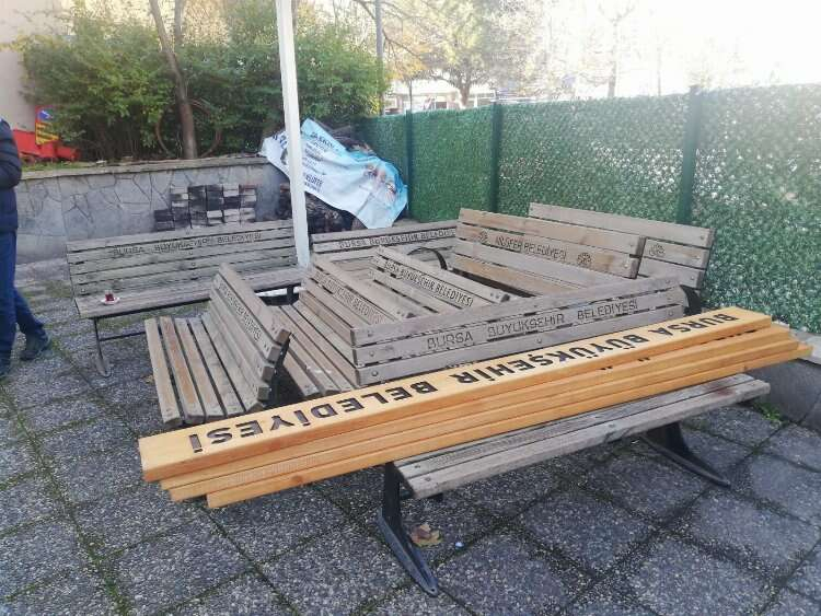 Nilüfer Belediyesi ekipleri, banklardaki ‘Bursa Büyükşehir Belediyesi’ yazılı tahtaları söküp, yerine hiç de estetik olmayan tahtaları monte etti.