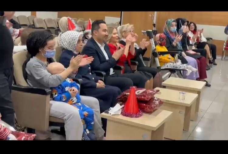 Tüm konserlerini sosyal projeler yararına veren Bursa Nilüfer Kadın Korosu, Sağlık Bilimleri Üniversitesi Bursa Yüksek İhtisas ve Eğitim Hastanesi Hematoloji Çocuk Onkoloji Kliniği'nde tedavi görmekte olan çocuklar ve anneleri için hastanede yeni yıl moral konseri verdi.