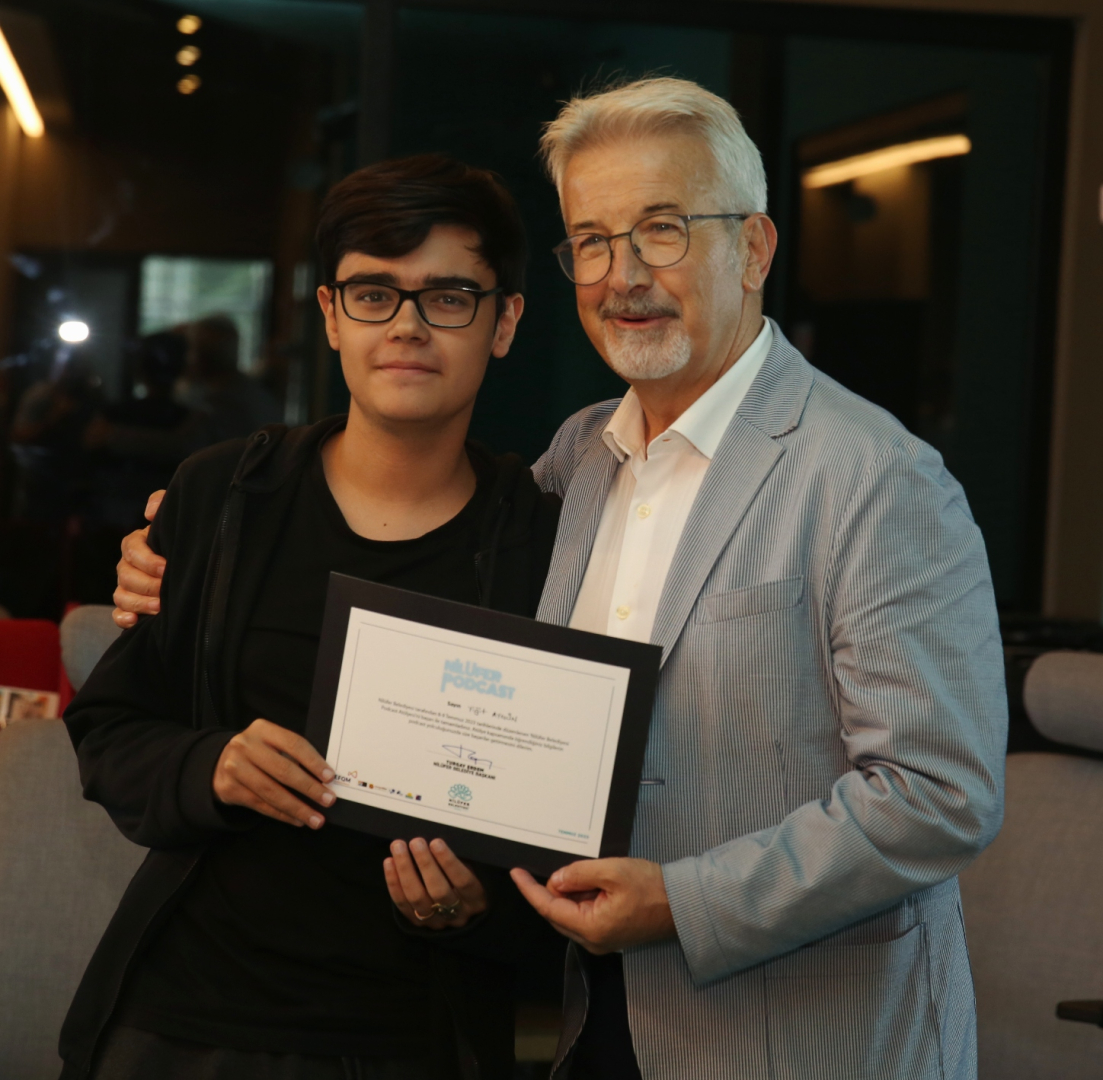 Nilüfer Belediyesi Dijital İçerik Stüdyosu’nda düzenlenen ilk Podcast Atölyesi, sona erdi. Programa katılan 20 kursiyer, sertifikalarını Nilüfer Belediye Başkanı Turgay Erdem’in elinden aldı.