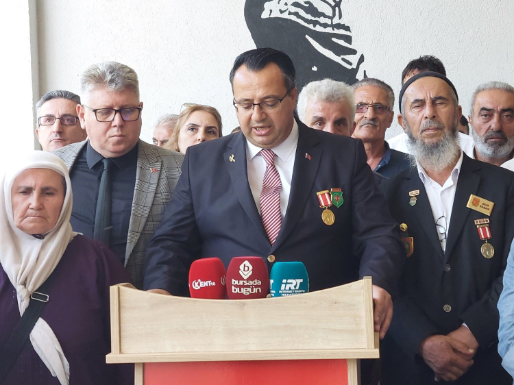 Türkiye Harp Malulü Gaziler Şehit Dul ve Yetimleri Derneği Bursa Şube Başkanı Haşim Sivri yaptığı açıklamada, “Bölücü terör örgütünün, maalesef Gazi Meclisimizde bulunan sözde siyasi temsilcilerinin terörist başı ve tüm terör olaylarının baş müsebbibi olan bebek katili Abdullah Öcalan’a ve diğer teröristlere özgürlük kisvesi altında başlattıkları eylem ve açıklamalar şu anda meclis komisyonlarına taşınmak istenmektedir. 8 Ekim 2024 tarihinde, aralarında bebek katili Abdullah Öcalan ve ağırlaştırılmış müebbet hapis cezasına çarptırılanların şartlı salıverilmelerini de kapsayan 110 maddelik kanun teklifi meclis komisyonuna sunulmuştur. Ne ilginçtir ki teklif jet hızıyla komisyona gelmiştir. Bu deli saçması tasarı komisyona gelirken hamasi vatan ve millet nutukları atanlar nerededir? Yoksa bir oldubittiye getirilip milletimizin sinir uçlarına dokunmak mı istiyorlar. Böyle bir şeyi asla yapmalarını önermiyoruz. Uyuyan sinir uçlarımız uyandırılırsa önünde duramayacakları bir sele maruz kalacaklarını asla unutmasınlar.