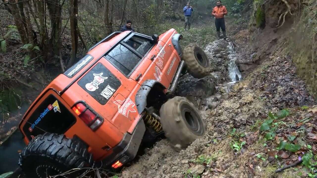 Uludağ’ın eteklerinde ve İstanbul’un Darlık Barajı civarında 12 kişilik arkadaş gurubu, 5 arazi aracıyla izleyenlerin nefesini kesti. İnsanın bile ayakta durmakta zorluk çektiği dere parkuruna tırmanan arazi araçları, izleyenlere büyük heyecan yaşattı.