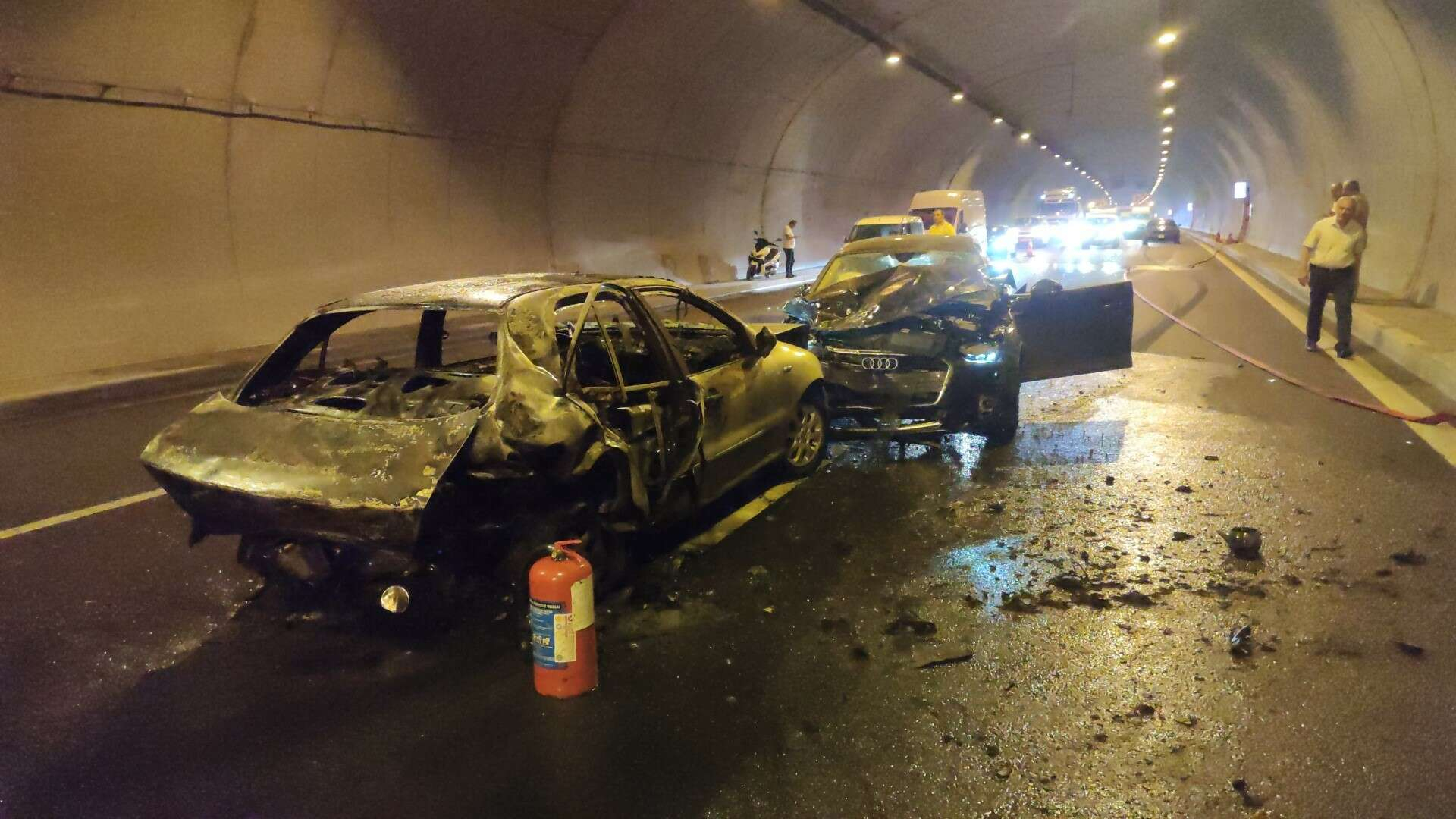 Orhangazi tünelinde aşırı hızlı olduğu iddia edilen bir otomobil, önünde seyir halindeki bir otomobile çarptı. Kazadan sonra öndeki otomobil bir anda alev aldı. Araçta bulunan 1’i kadın 3 kişi son anda çevreden yetişen vatandaşların da yardımı ile araçtan indirildi. Alev topuna dönen otomobile tünel içindeki yangın söndürme sistemindeki yangın tüpleri ve hortumlarla müdahale edildi. Kazada yanan otomobildeki kadın hafif yaralandı.