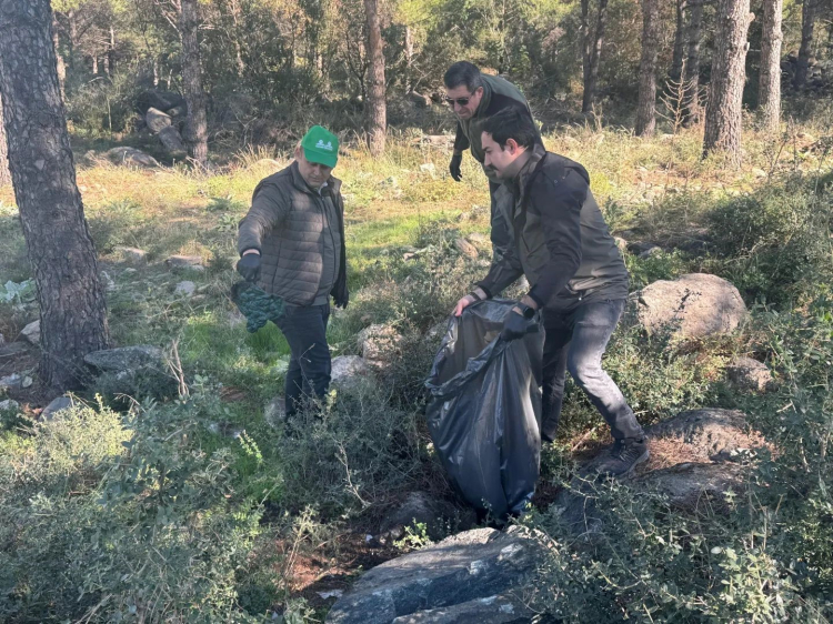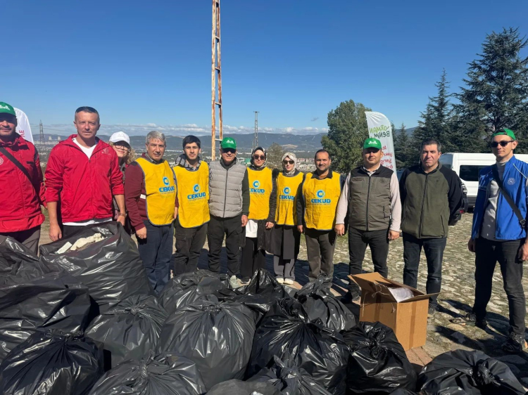 Bursa'da Uludağ'ın eteklerinde gerçekleştirilen temizlikte, torba torba çöp çıktı.