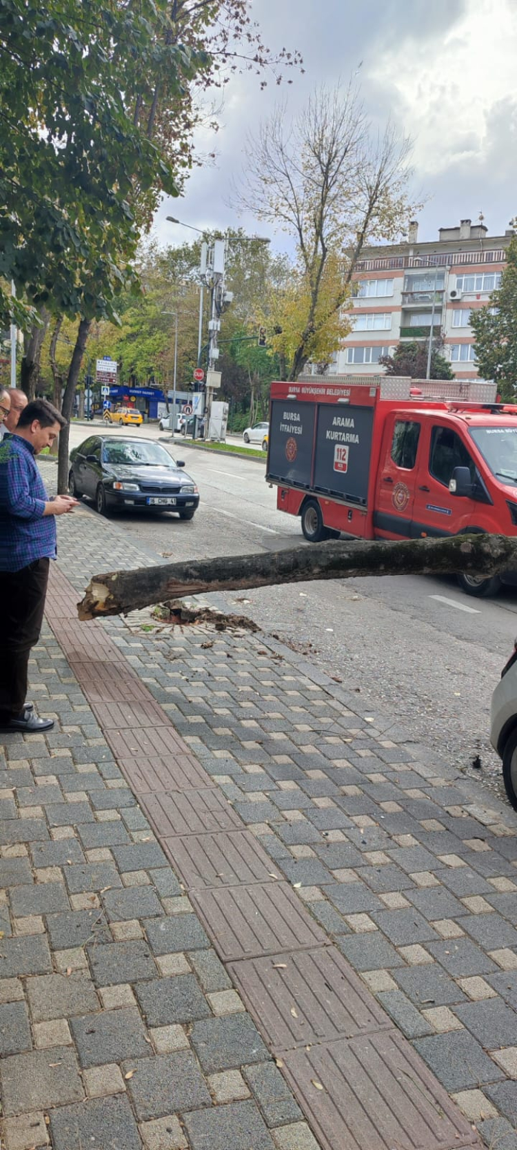 Osmangazi ilçesinde, Zübeyde Hanım Caddesi üzerinde kaldırımda bulunan çınar ağacı, köklerinin çürümüş olması ve lodosun etkisiyle devrilerek yol kenarına park edilmiş bir otomobilin üzerine düştü.