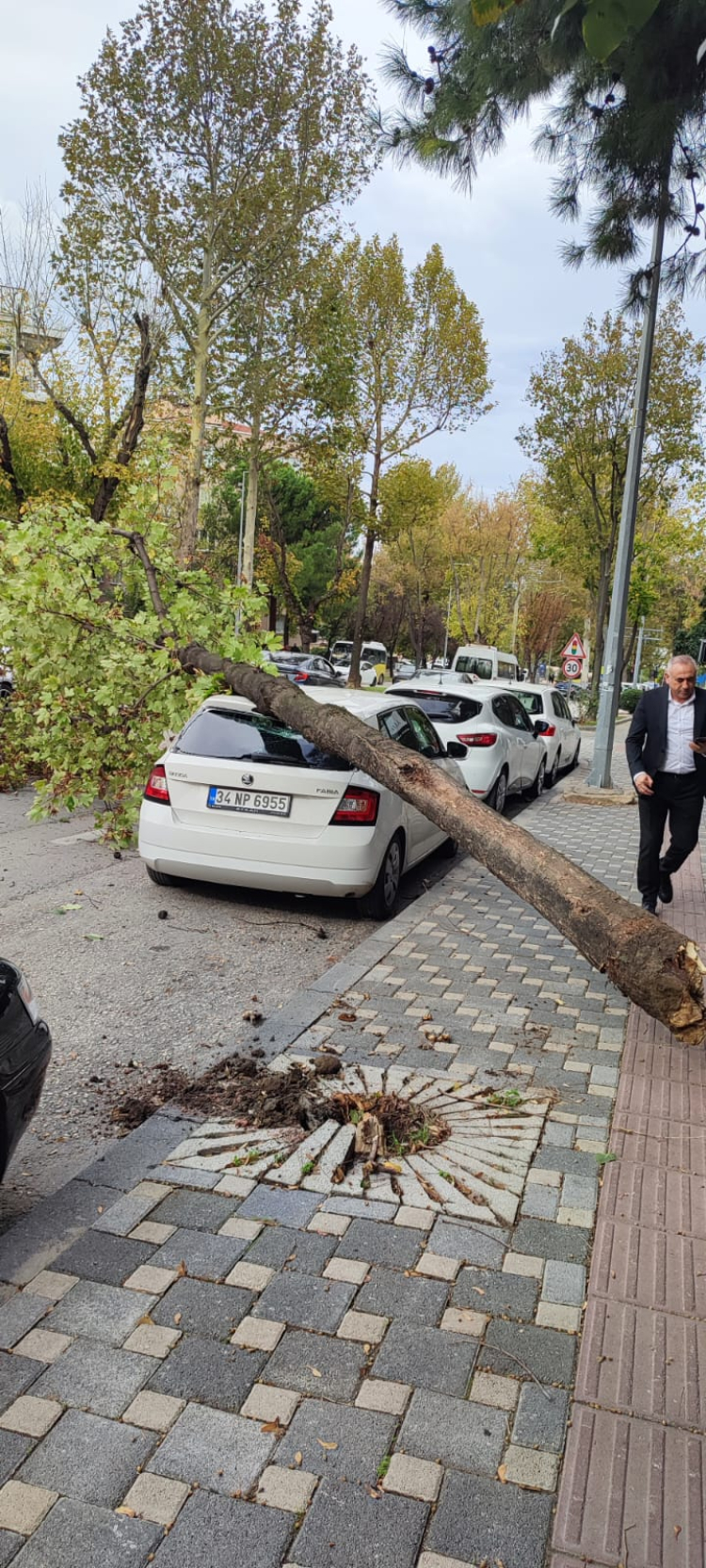 Olayda, ağacın kırılan gövdesi aracın tavanına ve arka camına zarar verdi. Otomobilde maddi hasar meydana gelirken, çevredeki vatandaşların ihbarı üzerine olay yerine gelen itfaiye ekipleri, devrilen ağacı kontrollü şekilde kaldırarak yolu yeniden trafiğe açtı.