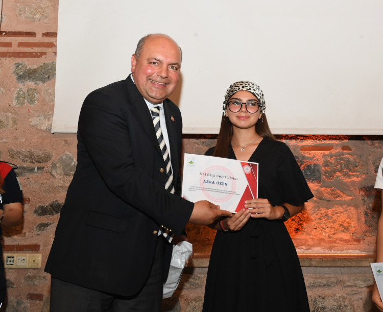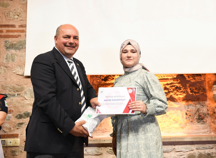 Sertifika alan öğrenciler Osmangazi Belediye Başkan Yardımcısı Tolga Kornoşor, tarafından çeşitli hediyelerle ödüllendirildi.