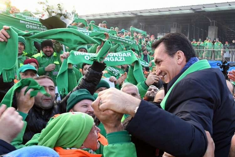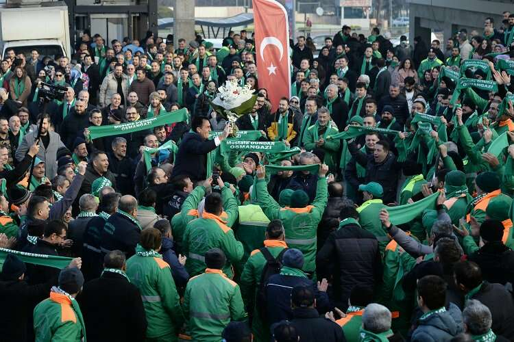 Bursa’da Osmangazi Belediye Başkanlığı için yeniden aday gösterilen mevcut başkan Mustafa Dündar, haftanın ilk iş gününde belediye personeli tarafından davul zurna eşliğinde meşalelerle karşılandı.