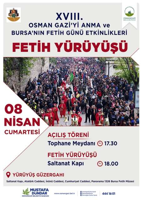 Osmangazi Belediyesi’nin Bursa’nın fethinin 697’nci yıl dönümü kapsamında düzenleyeceği Osman Gazi’yi Anma ve Bursa’nın Fetih Günü Etkinlikleri, Nisan ayı süresince Bursalıları tarihi bir yolculuğa çıkartacak.