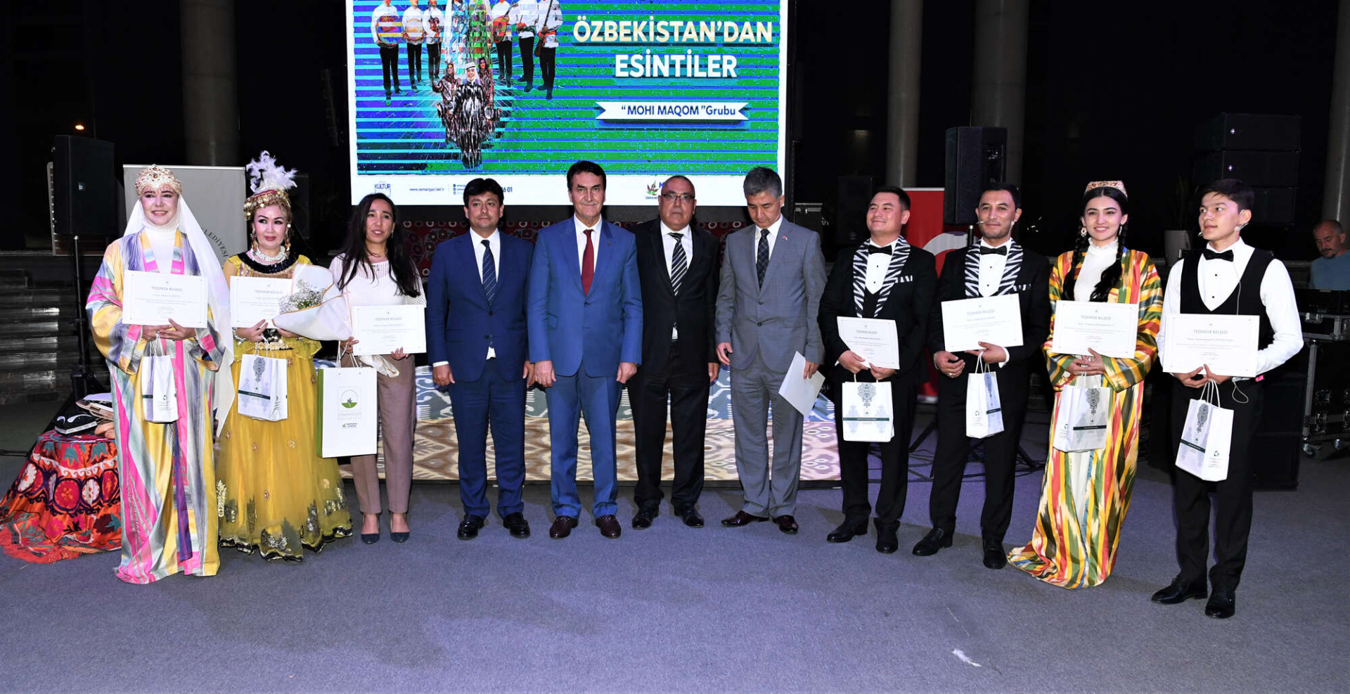 ‘Özbekistan’dan Esintiler’ gecesine; Osmangazi Belediye Başkanı Mustafa Dündar’ın yanı sıra, Özbekistan İstanbul Başkonsolosu Amirsaid Agzamxodjaev, Bursa Büyükşehir Belediye Başkanvekili Gökhan Dinçer, Karacabey Belediye Başkanı Ali Özkan, Yenişehir Belediye Başkanı Davut Aydın, Gürsu Belediye Başkanı Mustafa Işık, İL Kültür ve Turizm Müdürü Kamil Özer, Özbekistan vatandaşları ve Bursalılar katıldı. Başkan Dündar, gecede gösteri yapan ve katkısı bulunan Özbekistanlı konuklara teşekkür belgesi verdi.