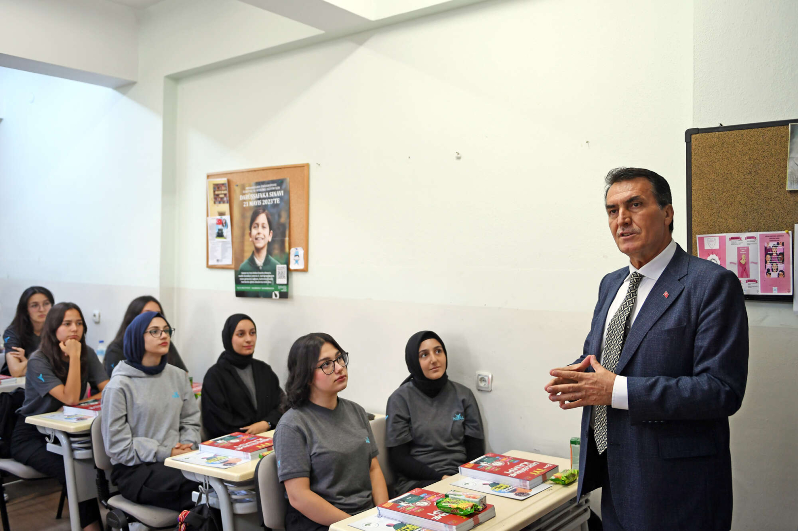 Sınıflarda ziyaret ettiği lise öğrencileriyle mesleki tercihleriyle ilgili sohbet eden Başkan Dündar, “Özellikle lise son sınıfta okuyan öğrencilerimiz, üniversitede seçecekleri bölümleri yavaş yavaş şekillendiriyor. Mesleklerine şimdiden karar verme aşamasındalar. Her mesleğin ayrı bir önemi ve güzelliği var ama kendinizi mutlu hissedeceğiniz mesleği yapın. Yaptığınız işin hakkını verin ve başarıyla icra edin. Hayallerinizi gerçekleştirmeye artık çok yakınsınız. Hedeflerinize ulaşabilmek için şimdi çok çalışın. Biz, sizin yanındayız.” ifadelerini kullandı.