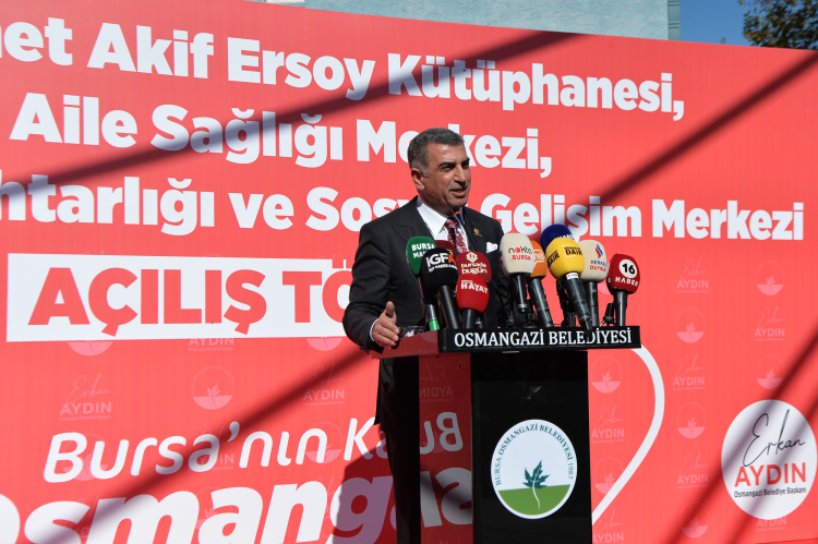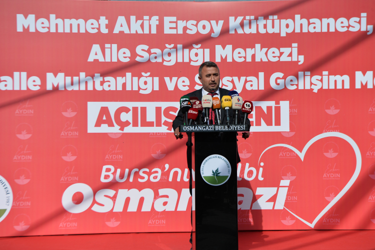 Aydın: “Halkımıza verdiğimiz sözleri bir bir yerine getiriyoruz” Osmangazi belediye Başkanı Erkan Aydın, açılış töreninde yaptığı konuşmada, 6 buçuk ay gibi kısa bir sürede 18’inci temel atma ve açılışı gerçekleştirdiklerini söyledi. Son zamanlarda her günü bir açılış ve temel atma yaparak geçirdiklerini ifade eden Başkan Aydın, “Aile sağlığı merkezi, muhtarlık binası, kütüphane ve sosyal gelişim merkezi gibi sosyal belediyeciliğin en güzel örneklerinin yer aldığı Mehmet Akif Hizmet Binası’nı hizmete açıyor olmanın mutluluğunu yaşıyoruz. 29 Ekim’e kadar açılış ve temel atmalarımız devam edecek. Toplamda 21 açılış ve temel atma gerçekleştireceğiz. Seçimden önce bizlere en büyük projeleriniz ne diye sorduklarında, bizim mega projelerimiz yok en büyük projemiz anlayışı değiştirmek olacak dedik. Gidip milyarlarca parayı heba etmeyeceğiz, onun yerine spor tesisleri, kütüphaneler, kreşler ve sosyal alanlar gibi halka dokunan, insanların kendini mutlu hissedeceği tesisler ve hizmetler yapacağız dedik. Çok şükür halkımıza verdiğimiz bu sözleri bir bir yerine getiriyoruz. Vakit çok hızlı geçiyor. Bunu bildiğimiz için hızlı davranıp, Osmangazi’de yaşayan yurttaşlarımızın mutlu olması adına çaba sarf ediyoruz. Bugün açılışını yaptığımız Mehmet Akif Hizmet Binası’nın mahallemize, Osmangazi’ye ve Bursa’ya hayırlı olmasını diliyorum” dedi.