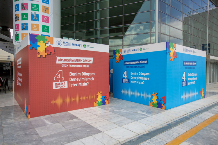 Bursa Büyükşehir Belediyesi, Bursa Kent Konseyi Sağlık Çalışma Grubu ve BURFAŞ tarafından Dünya Otizm Farkındalık Günü ve Otizm Farkındalık Ayı kapsamında ‘Bir Anlığına Benim Dünyam’ etkinliği düzenlendi. Otizmli bireylerin çevresel etkiler nedeniyle karşılaştıkları zorluklara, Atatürk Kültür Merkezi Merinos Yerleşkesi’nde özel olarak hazırlanan farkındalık kabiniyle dikkat çekildi.