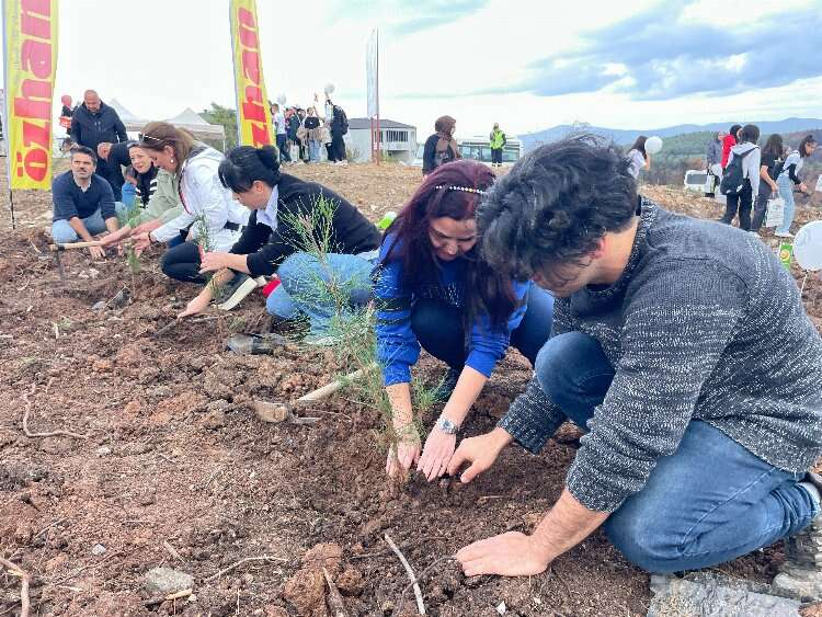 Kent protokolü ve yüzlerce öğrencinin katıldığı törende Özhan Market personeli ve müşteriler daha yeşil bir dünya için fidanları bir bir toprakla buluşturdu.