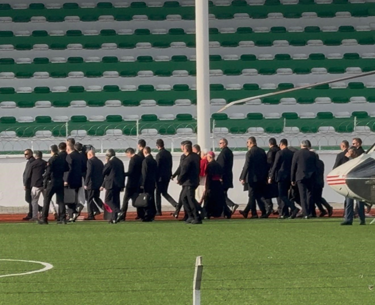 Papa'yı taşıyan helikopter ilçe stadyumuna indi.