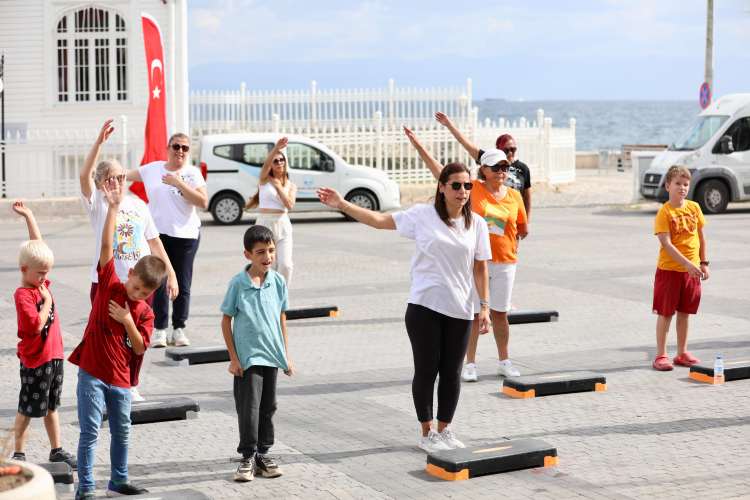 Etkinlikler kapsamında Mütareke Meydanı’nda, katılımcılara sağlıklı yaşamı teşvik etmek amacıyla step - aerobik seansı gerçekleştirildi. Mudanyalılar, enerjilerini atarken, sporun günlük yaşamda nasıl bir yer kaplaması gerektiği konusunda da bilgi edindiler.