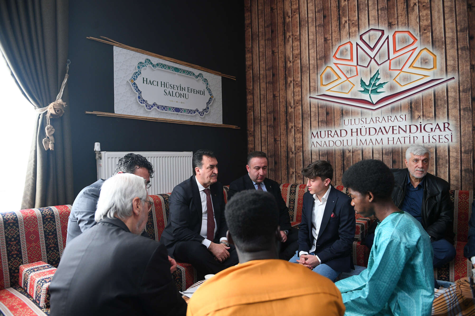 Türkiye’nin tek çatı altında inşa edilmiş en büyük proje okullarından biri olan Uluslararası Murad Hüdavendigar Anadolu İmam Hatip Lisesi’nde düzenlenen 2022-2023 Eğitim Öğretim Yılı 1’inci dönemi karne töreni öncesinde, okul yönetimi tarafından öğrencilerin dinlenip birlikte vakit geçirmeleri için düzenlenen Hacı Hüseyin Efendi Salonu’nun açılışı gerçekleştirildi. Osmangazi Belediye Başkanı Mustafa Dündar’ın, geçtiğimiz günlerde vefat eden babası Hacı Hüseyin Dündar’ın adının verildiği dinlenme salonu, öğrencilerin okuduğu Kur’an-ı Kerim ve dualar eşliğinde açıldı. Açılışın ardından Başkan Dündar, AK Parti Osmangazi İlçe Başkanı Ufuk Cömez ve okul yöneticileri ile birlikte salondaki öğrencilerle bir süre sohbet edip, başarılar diledi.