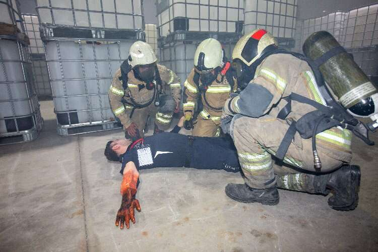 13 ülkeden 80 kişinin üzerinde yabancı uzman, 20 kurum katılımı, HAVELSAN ekibi, UMKE, Bursa Büyükşehir Belediyesi İtfaiye ve Akıllı Şehircilik Dairesi Başkanlıkları ile Burulaş ekiplerinin de katılımıyla 200’ü aşkın personelle kimyasal alan, yangın ve tren kazası tatbikatları gerçekleştirildi. Küçükbalıklı Afet Koordinasyon Merkezi’nde gerçekleştirilen kimyasal alan ve yangın tatbikatları gerçeği aratmazken, tren kazası tatbikatı ise adeta nefesleri kesti. Senaryo gereği metro, Nilüfer İstasyonu ile Odunluk İstasyonu arasındaki tünelden geçerken, deprem meydana geldi ve metro vagonu raylardan çıktı. Metrodaki yolculardan 21’i yaralanırken, olay yerine gelen ekipler, olaya son teknolojik donanımlarla müdahale etti. Müdahale ekipleri giyilebilir teknolojilerle donatılırken, ilk olarak olay yerine bir drone yönlendirildi. Olay yeri ve yaralı tespitleri öncelikle drone ile yapıldı. Bu tespitin ardından yürüyebilecek durumdaki yolcular, raylar üzerinde çıkış noktasına yönlendirilirken, müdahale ekipleri de vagona girerek içerideki yaralılarda durum tespiti yaptı. Bu tespit ekiplerin özel gözlükleri sayesinde kriz merkezinden de anlık takip edildi. Bu gözlem ve tespitlerin ardından da devreye UMKE ekipleri girdi. Yaralılara ilk müdahaleyi vagon içinde yapan ekipler, termal battaniyeye sardıkları yaralıları sedye ile raylar üzerinde istasyona kadar taşıdı. Yaklaşık 3 saat süren tatbikat, başarıyla tamamlandı.