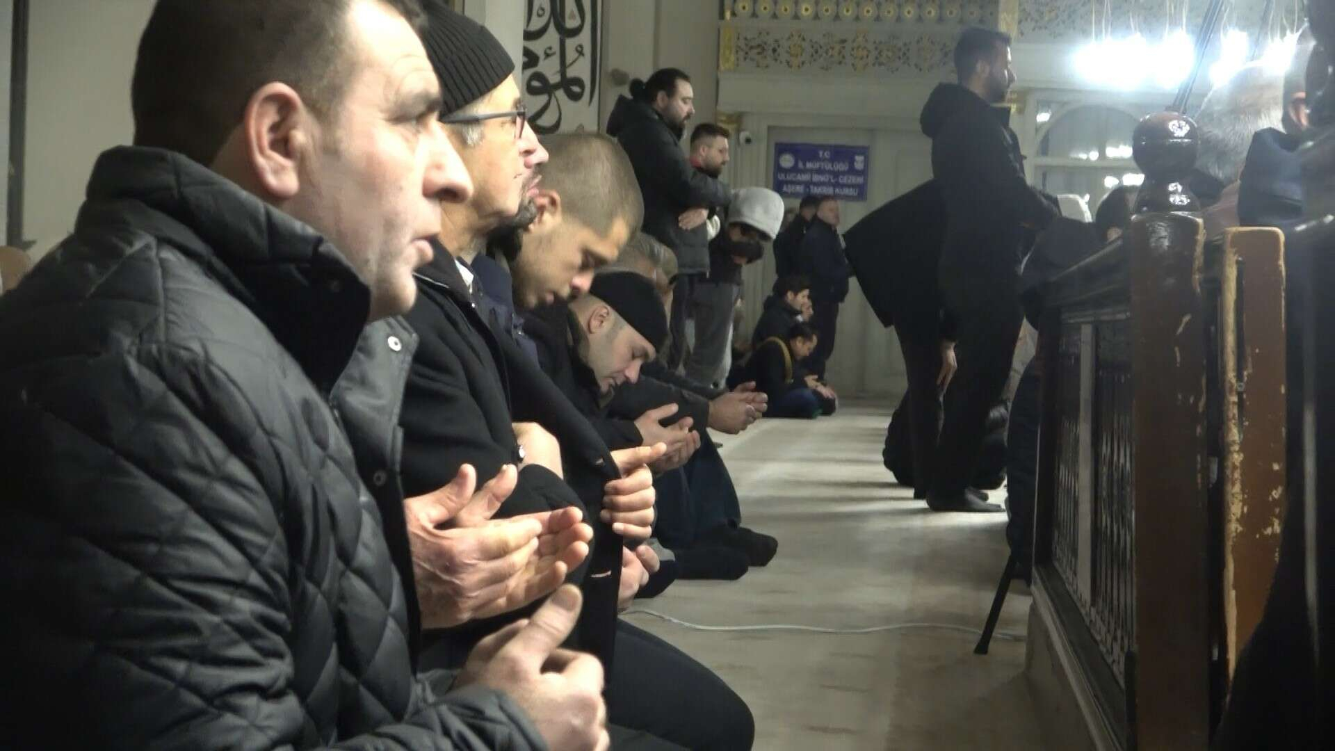 Camiye akın eden vatandaşlar, kılınan yatsı namazı sonrası okunan dualara ‘amin’ dedi.