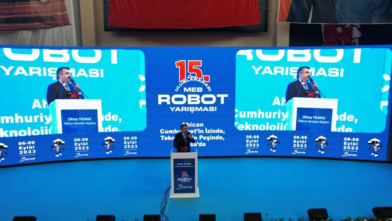 Millî Eğitim Bakanlığı Mesleki ve Teknik Eğitim Genel Müdürlüğü tarafından düzenlenen Uluslararası 15. MEB Robot Yarışması Yıldırım Belediyesi ev sahipliği ile Naim Süleymanoğlu Spor Kompleksi’nde düzenleniyor. 9 Eylül’e kadar sürecek olan MEB Robot Yarışması; Endüstriyel Robot Kol, Çizgi İzleyen (Temel Seviye), Çizgi İzleyen (İleri Seviye), Hızlı Çizgi İzleyen, İnsansız Hava Aracı (Mini Drone), Mini Sumo, Tasarla-Çalıştır, Yumurta Toplama (Caretta Caretta), Labirent Ustası, Tozkoparan Robot (Temel Seviye), Serbest Proje, Temalı, Su Altı Aracı (ROV) ve Otonom Araç olmak üzere toplam 14 kategoride düzenleniyor. Yarışmaya 81 il ve 18 ülkeden toplam 12 bin 500 robot ve 5 bin katılımcı katıldı. Açılış programına Yıldırım Belediye Başkanı Oktay Yılmaz’ın yanı sıra Milli Eğitim Bakan Yardımcısı Kemal Şamlıoğlu, Bursa Valisi Mahmut Demirtaş, Mesleki ve Teknik Eğitim Genel Müdürü Ali Karagöz, TEKNOFEST Genel Sekreteri ve T3 Vakfı Müdürü Elvan Kuzucu Hıdır, Büyükşehir Belediye Başkanı Alinur Aktaş, AK Parti İl Başkanı Davut Gürkan, AK Parti Bursa Milletvekilleri Osman Mesten ve Mustafa Yavuz, Yıldırım Kaymakamı Metin Esen, kurum müdürleri ile yarışmacılar ve danışmanları katıldı.
