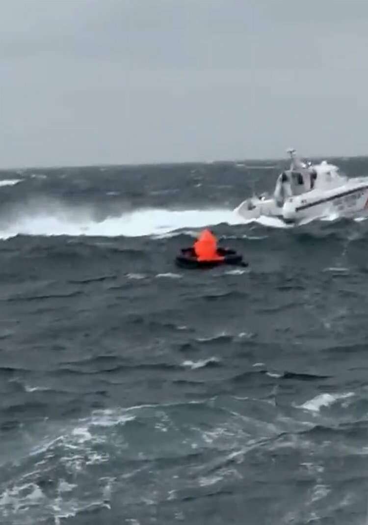 Ekipler, fırtınalı havada ulaştıkları kurtarma bölgesinde boş bir can salı tespit ettiler. O anlar ise kamera ile an be an kaydedildi.