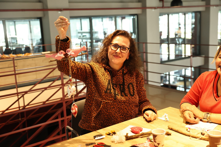 Pancar Deposu’nda gerçekleştirilen atölyeye katılan kadınlar, Gülçin Çalık eğitmenliğinde kapı süsleri tasarladı. Katılımcılar, el emeği ürünlerine son şeklini vermek için özenle çalışırken, aynı zamanda keyifli vakit geçirdi.