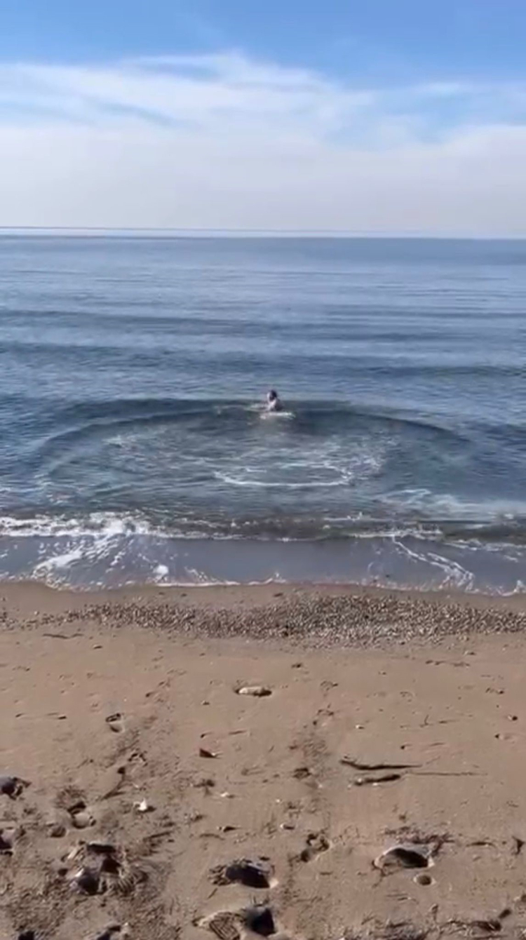 Bursa'da kar yağışı ve dondurucu soğuğa rağmen bazı vatandaşlar Mudanya ve Gemlik'te denize girerek ilginç anlar yaşattı. Sıfırın altında hava sıcaklıkları ve karla kaplı sahilde denize girenler, bu cesur eylemi cep telefonları ile kaydetti.