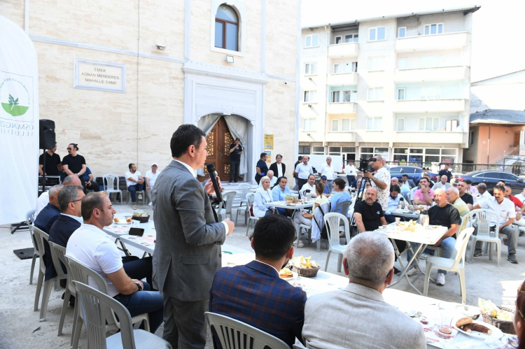 sorunları yerinde tespit ederek çözümler üretiyor. Göreve geldiği ilk günden itibaren daha yaşanabilir bir Osmangazi için gece gündüz çalışan Başkan Aydın, ilçedeki sorunları birinci ağızdan dinleyip çözümler üretebilmek adına mahalleri ziyaret ederek vatandaşlar ile bir araya geliyor. Osmangazi’nin 136 mahallesini tek tek ziyaret eden Başkan Aydın’ın bu kez durağı Emek Adnan Menderes Mahallesi oldu. Emek Adnan Menderes Mahalle Cami önünde düzenlenen kahvaltı programıyla mahalle sakinleriyle bir araya gelen Aydın, vatandaşların istek ve taleplerini dinleyerek istenilen hizmetlere en kısa sürede başlanılacağının sözünü verdi. Düzenlenen programa Osmangazi Belediye Başkanı Erkan Aydın’ın yanı başkan yardımcıları, meclis üyeleri, mahalle muhtarları ve mahalle sakinleri katıldı. Toplantıda, Emek Adnan Menderes Mahallesi Naci Özbay ve mahalle sakinleri tek tek söz alarak Başkan Aydın’a mahallelerine istedikleri hizmetleri dile getirdi.