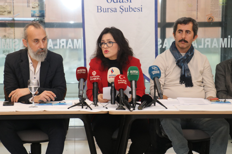TMMOB Mimarlar Odası Bursa Şube Başkanı Şirin Rodoplu Şimşek, konuşmasının ardından gazetecilerin sorularını yanıtladı.