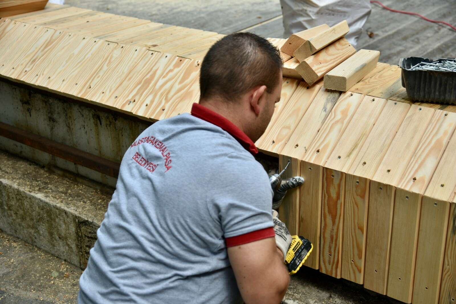 Hazırlanan proje çerçevesinde yenilenen terasta ahşap, kent mobilyaları, çöp kovaları, lavabolar ve trabzanların boyanma çalışmaları ile seyir terası yeni ve konforlu görüntüsüne kavuşacak.
