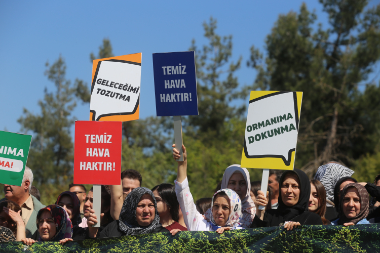 Bursa'da Tahtalı Mahallesi'ne yapılması planlanan beton santrali için köy halkı eylem yaptı. Beton santralinin yapılacağı ormanlık alanda toplanan köylüler ellerinde pankartlarla slogan attı.