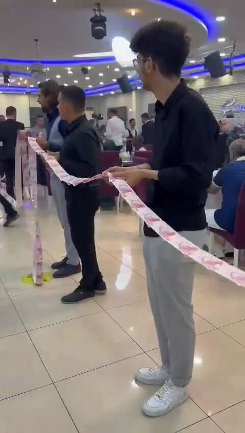 Düğün salonunun bir ucundan diğer ucuna uzayan 45 metrelik paraları gören davetliler şaşkınlıklarını gizleyemedi. Dakikalarca süren takı merasimi tüm paranın damada takılmasıyla son buldu. Sosyal medyada binlerce kişi tarafından beğenilen görüntülere yorum yağarken; damadın arkadaşları takılan altın düğün hediyeleri haricinde "eğlence olsun^" diye bu organizasyonu da ayrıca düzenlediklerini söyledi.
