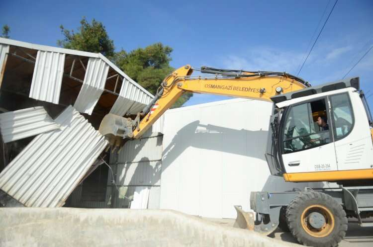 Osmangazi Belediyesi, Ovaakça Santral Mahallesi’nde tarım arazisi üzerine inşa edilen kaçak fabrikaları yıktı.