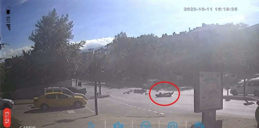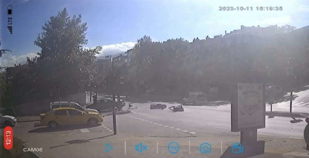 Trafik ekipleri kontrollü şekilde trafiği sağlarken, olayla ilgili tahkikat başlatıldı. Kaza anı ise güvenlik kamerasına anbean yansıdı.