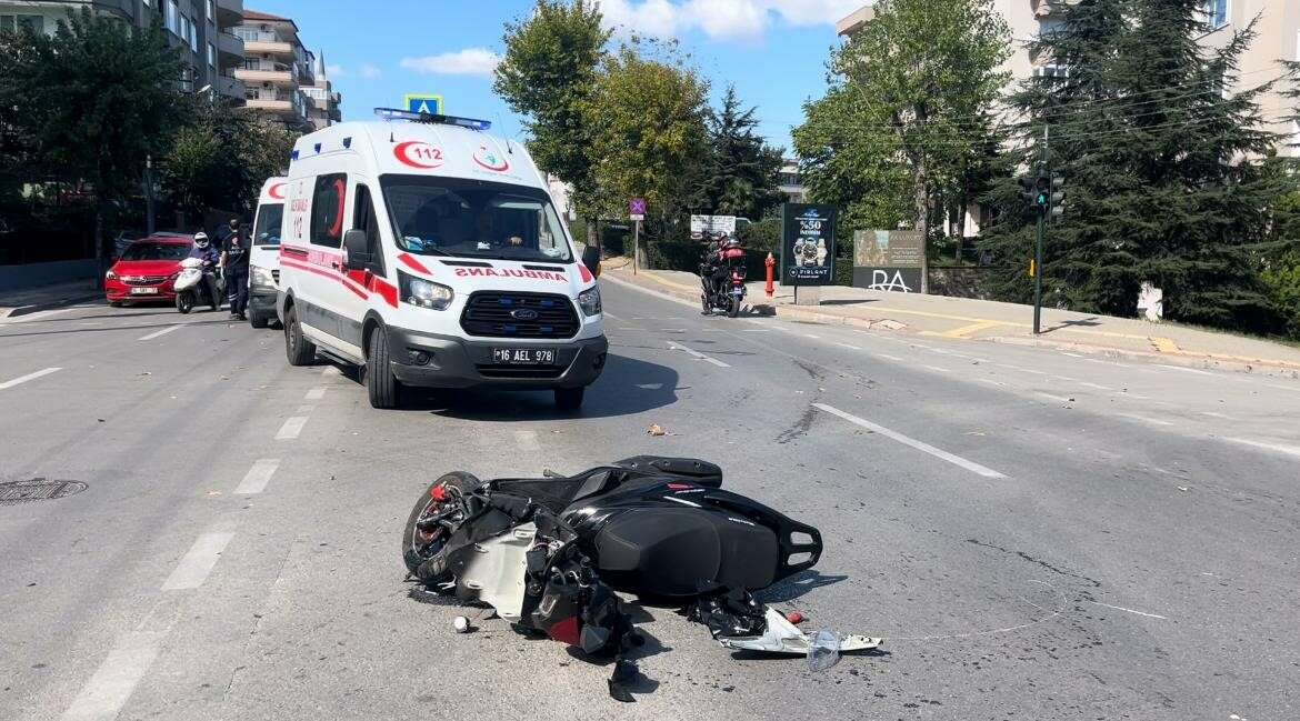 Bursa’da seyir halindeki motosiklet, karşı şeritten hatalı dönüş yapan otomobilin çarpmasıyla savruldu. Kaza anı kameraya yansırken, Taylandlı kadın başına aldığı darbeyle yaralandı.