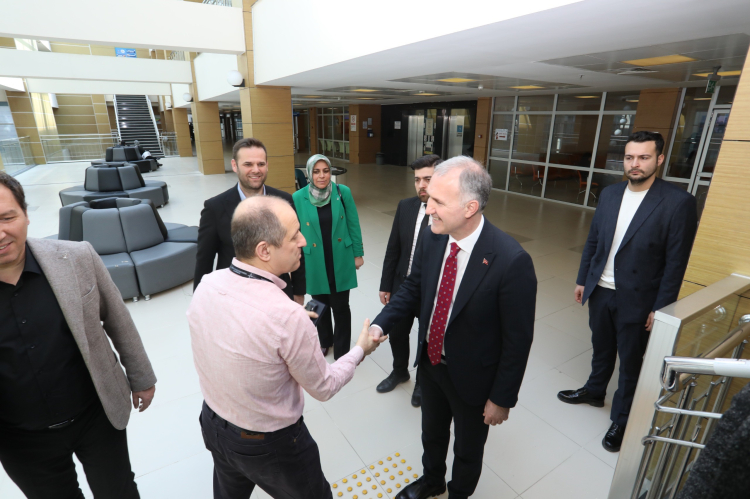 İnegöl Devlet Hastanesi'nde Başhekim Hayrettin Göçmen ile hastane yöneticileri tarafından karşılanan Başkan Taban ve beraberindeki heyet, hastane yönetim kadrosuyla toplantı salonunda bir araya geldi. Burada yapılan görüşmelerin ardından hastanedeki hekimler tek tek dolaşılarak Tıp Bayramları kutlandı, sağlık çalışanlarına çiçek hediye edildi.