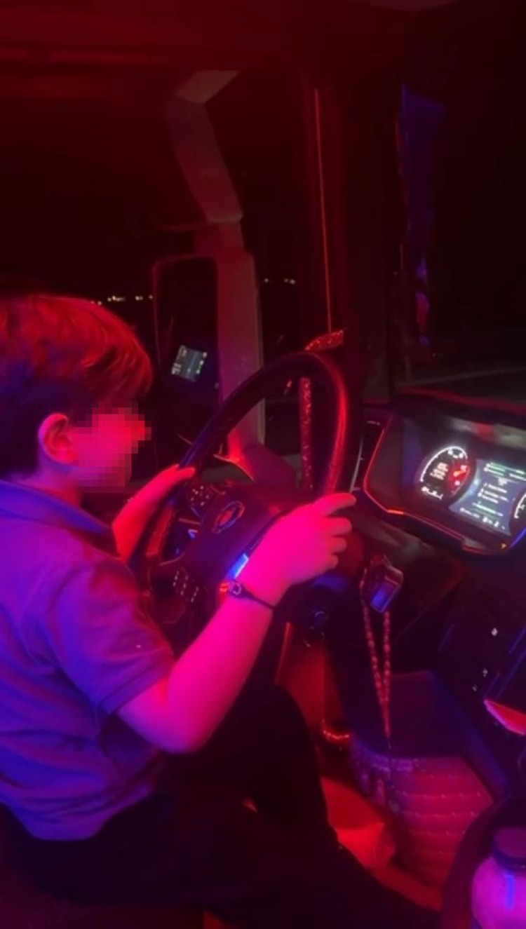 Tır kullanan 7 yaşındaki Çınar yürekleri ağza getirdi