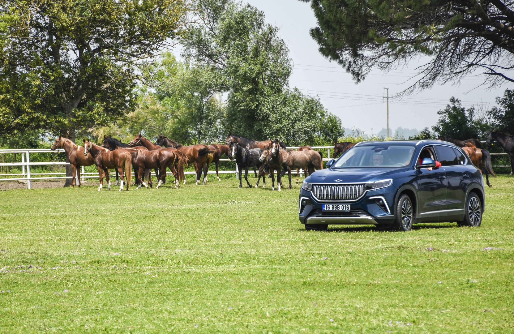 Türkiye’nin yerli ve milli otomobili TOGG, yetiştirdiği yarış atlarıyla dünyaca ünlü olan TİGEM’in Karacabey Harası’ndaki şampiyon atlarıyla yarıştı.