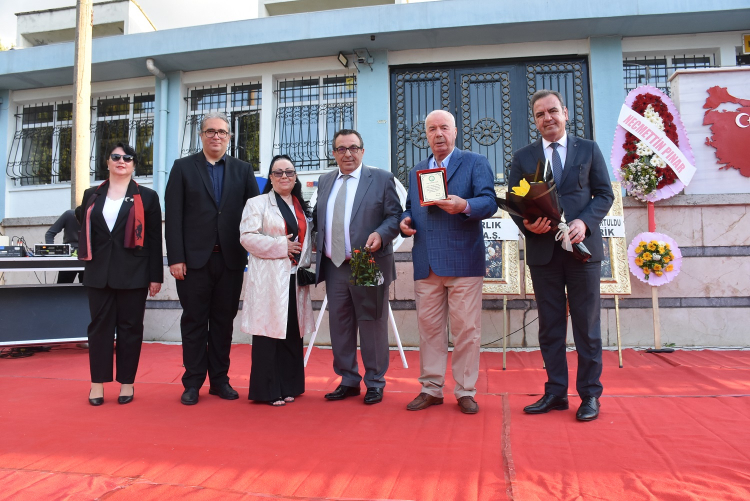 Daha sonra önceki dönem vakıf başkanlarından Necmettin Pınar’a 1978-1979 dönemi mezunları adına plaket takdimi yapıldı ve Vakıf Başkanı Erol Gülmez ve Okulun önceki dönem mezunlarından Zehra Güzelil, Okul Müdürü Erkan Tokdil ve Okul Müdürü Baş Yardımcısı Gürhan Çoban’a çiçek takdiminde bulundu.