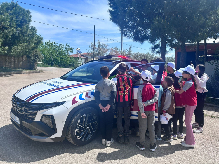 Bursa'nın Karacabey ilçesindeki Karakoca İlköğretim Okulu'nda, Trafik Haftası kapsamında çocuklara güvenli trafik eğitimi verildi.