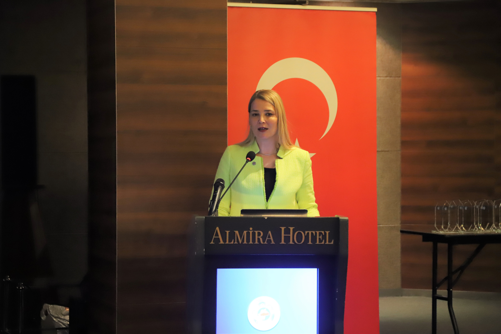 TÜGİAD Genel Başkanı Nilüfer Çevikel, depremde hayatını kaybedenlere Allah’tan rahmet yaralılara acil şifalar dileyerek başladığı konuşmasında şu ifadeleri kullandı: “Kahramanmaraş başta olmak üzere, depremin etkilediği çoğu şehre gittik. TÜGİAD, depremin yaşandığı ilk andan itibaren bölgeye tüm gücüyle destek verdi. Ahmet Başkan’a ve üyelerimize bu konuda teşekkür etmek istiyorum. İleride olası bir deprem anında bizimde aynı şeyleri yaşamamamız için tedbirli olmalıyız. Deprem bölgeleri için çok fazla çalışmamız gerekiyor. İlk Türkiye Odalar ve Borsalar Birliği’nin sonrasında da bizzat Ticaret Bakanı Mehmet Muş’un daveti ile bölgede araştırmalarda bulunduk ve ne yapabiliriz hakkında fikirler ürettik. Kalıcı göçü önlemek için güvenli bölgelere derhâl kalıcı konutların yapılması ve bu illerin ‘Kalkınmada Öncelikli 6. Bölge’ konumuna getirilmesi gerekiyor. Bizim bu fikirlerimize çok değer verildi, inşallah karşılık da bulacak. Deprem bölgelerine yardımı hiç kesmeyeceğiz. TÜGİAD Bursa Şubesi bugüne kadar birçok başarılı işe imza attı. Bunlar eminim ki yeni dönemde de artarak devam edecek. Zor bir dönemden geçerken nitelikle arkadaşlarımızla bu yükü taşımak bizlere düştü. Verdiği emeklerden dolayı ben Bursa Şube Başkanımız Ahmet Parseker’e ve 12. Dönem Yönetim Kurulu’na çok teşekkür ederim. Yeni dönemde görevi devralan Selim Baykal’a da görevinde başarılar diliyorum.” diye konuştu.