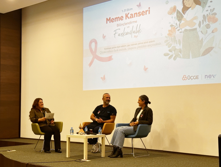 ÜÇGE, Ekim'de "Meme Kanseri Farkındalık Ayı" etkinliği düzenledi. "Fark Et, Yaşamı Koru" adlı söyleşide, kadın sağlığı ve erken teşhisin önemi vurgulandı. Katılımcılar, NEV Sağlık Grubu'ndan uzmanların sunumlarıyla bilgilendirildi.