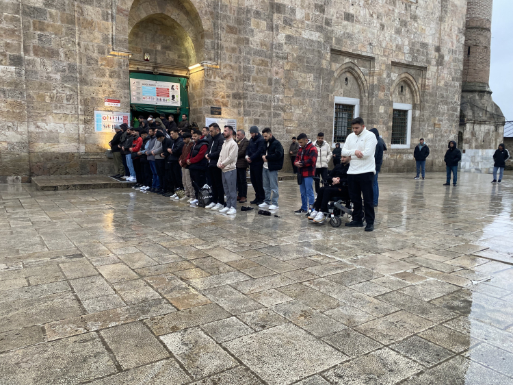Sabahın erken saatlerinden itibaren Ulu Cami'ye gelen vatandaşlar, kısa sürede caminin içini doldurdu. Yoğunluk nedeniyle içeride yer bulamayan çok sayıda kişi, yağmura rağmen ibadetlerini avluda gerçekleştirdi.