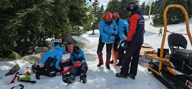 Kış turizminin merkezi Uludağ'da AFAD, UMKE, JAK ve Bursa Büyükşehir Belediyesi İtfaiye Daire Başkanlığı ekiplerinin katılımıyla ortak kış tatbikatı yapıldı.