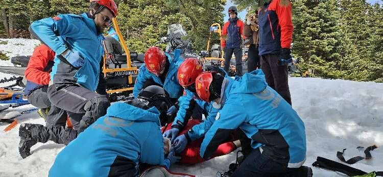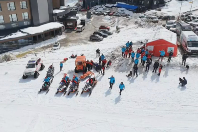 Tatbikat, haber merkezine gelen anons ile başladı. Anons sonrası ekipler harekete geçerek kar motorları ile yaralı vatandaşın yanına ulaştı. Nefes kesen tatbikatta ekipler, yaralıyı kurtarmak için zamanla yarıştı.