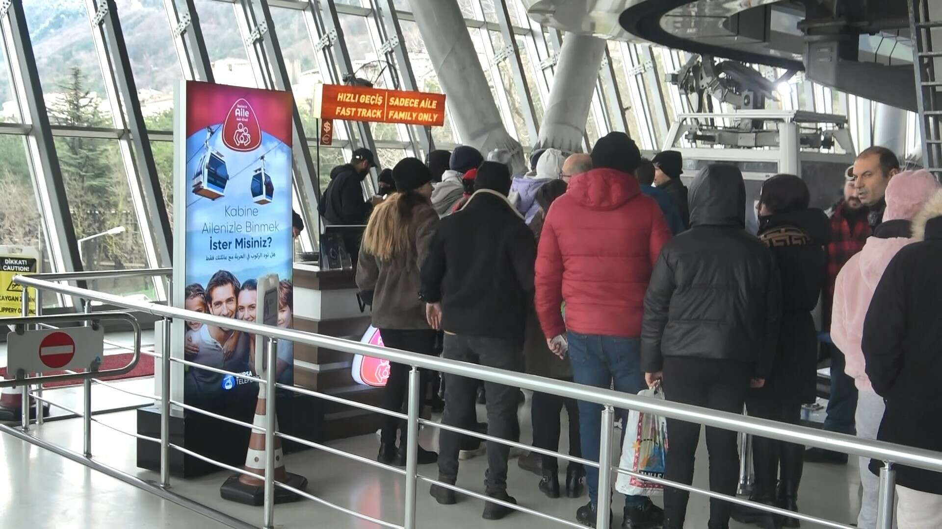 Hafta sonunda Uludağ'da yoğunluk yaşanıyor. Eşsiz Bursa manzarası eşliğinde zirveye çıkmak isteyenler teleferiğe yöneldi. Vatandaşların akını üzerine teleferikte uzun kuyruklar oluştu. Kuyruklar, içeriden dışarıya doğru taştı. Pazar günü olması sebebiyle teleferikle Uludağ'a çıkmak isteyen vatandaşlar sıraya girerek bilet aldı. Eşsiz Bursa manzarası eşliğinde zirveye çıkmak istediklerini söyleyen vatandaşlar, sıranın beklemeye değer olduğunu söyledi. Yüzlerce kişinin akın ettiği Uludağ'da adım atacak yer kalmadı.