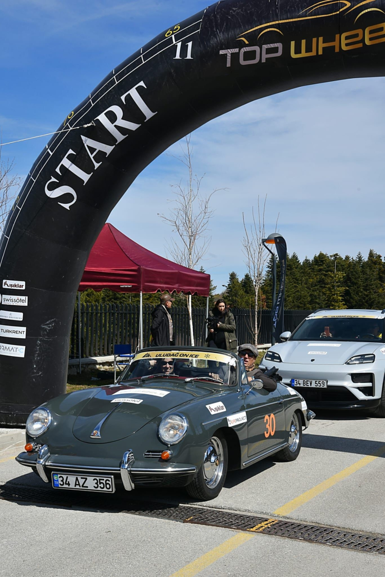 Uludağ zirvesinde buluşan 32 otomobil tutkunu, karlı yollarda sürüş keyfi yaşadı. 1964 model Mustang ve Porsche gibi klasikler organizasyonda büyük ilgi gördü.