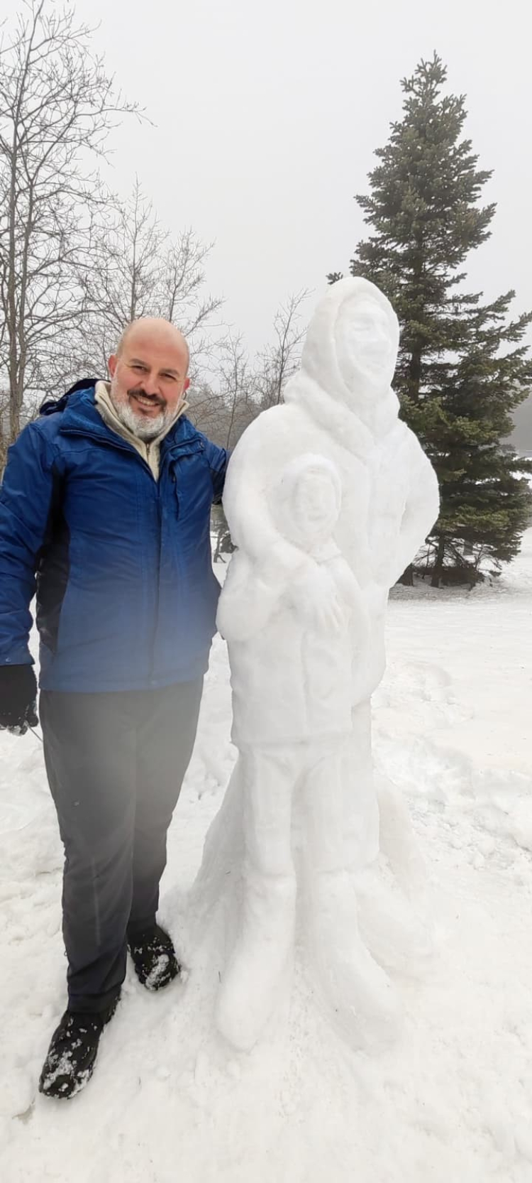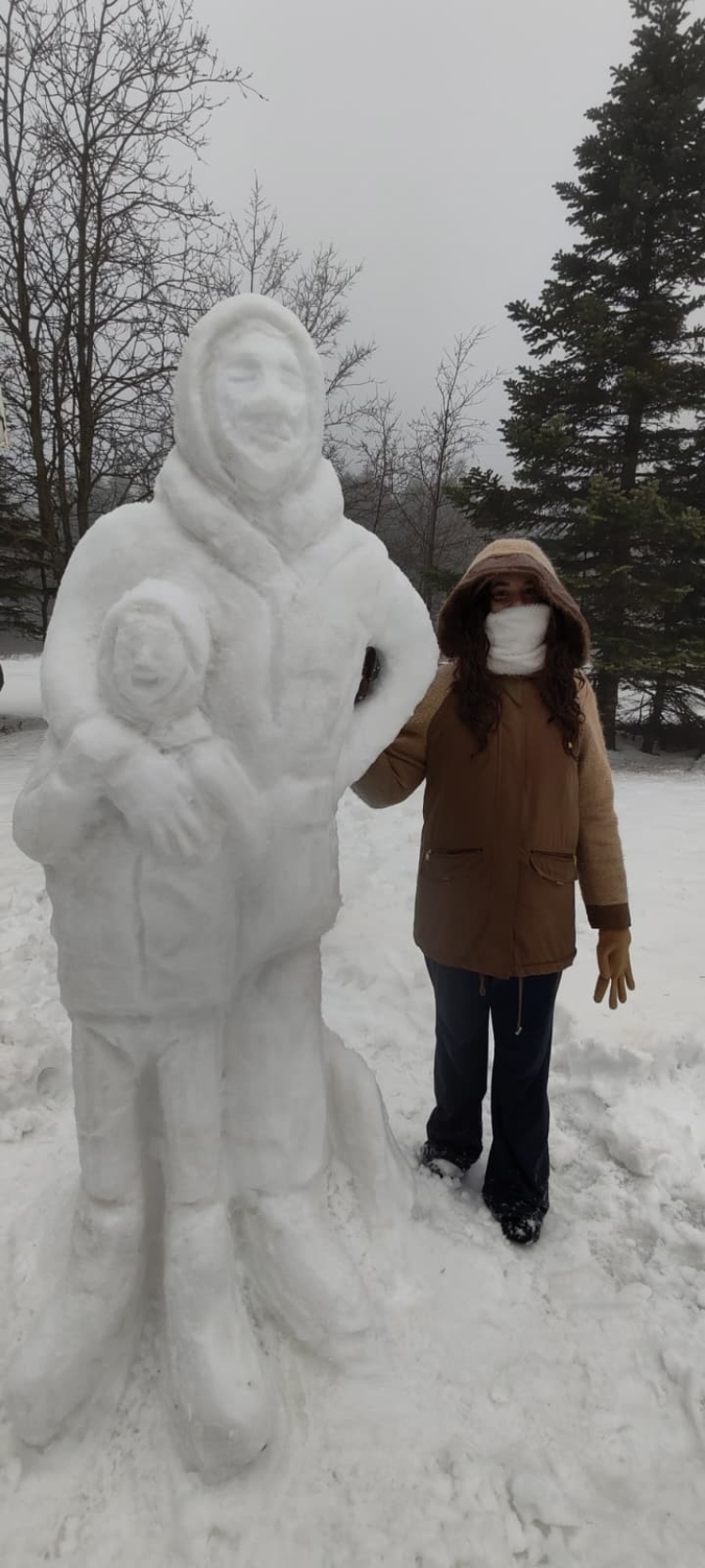 Uludağ'da kar yağışını değerlendiren Hakan Babaoğlu, Sarıalan mevkiinde anne ve çocuğu tasvir eden kardan bir heykel yaptı. Detaylarıyla dikkat çeken ve gerçekçi bulanan heykel, ziyaretçilerden ilgi topladı ve fotoğraf çekilmek için uğrak yeri oldu.