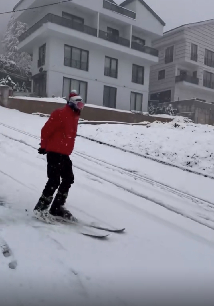 Uludağ değil Yıldırım! Sokak ortasında kayak yaptı
