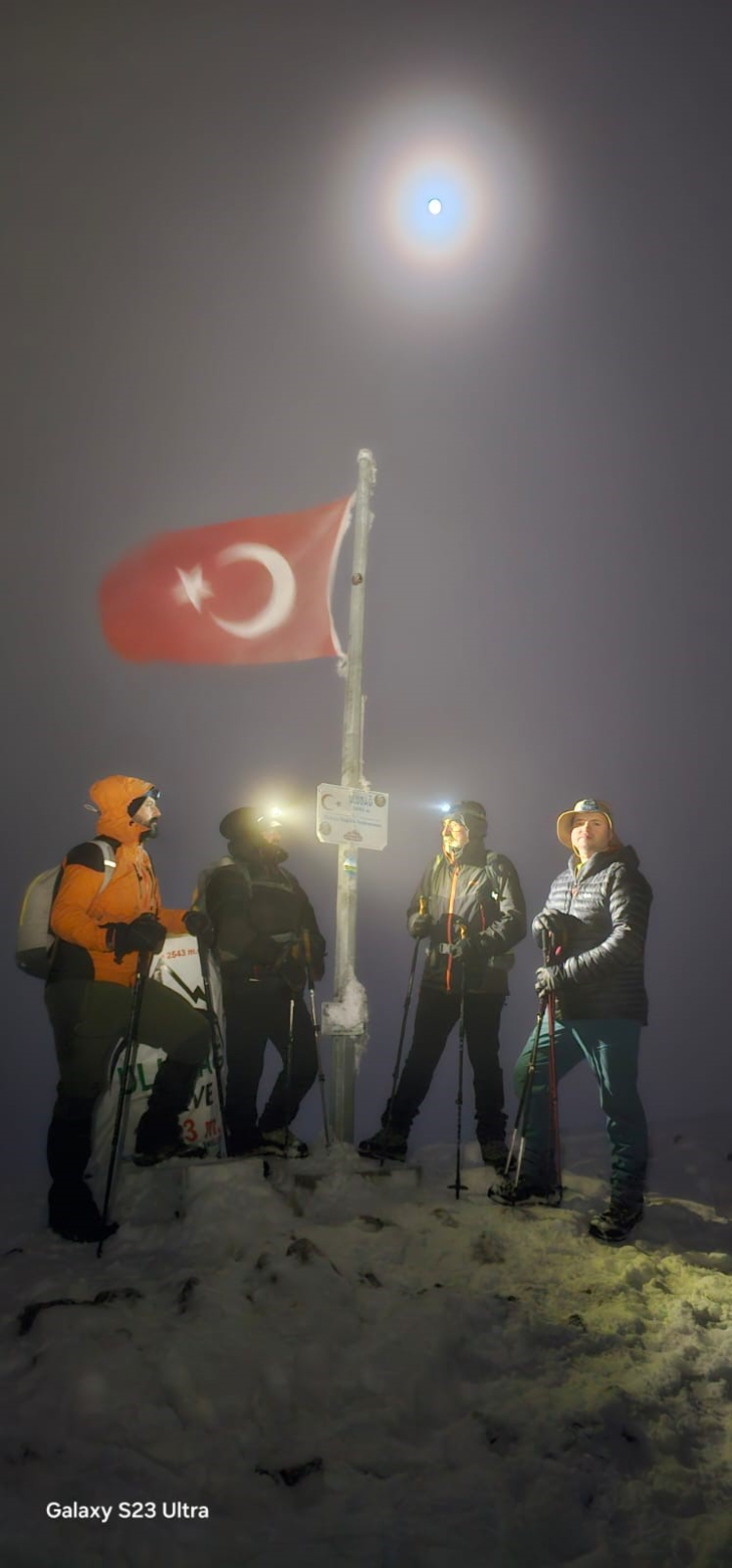 Karla kaplı zirvenin en yüksek noktası olan bayraklı tepeye çıkan dağcılar burada fotoğraf çektirip bölgeye kamp attı. Soğuk havaya rağmen geceyi zirvede geçiren dağcılar karla buluşmanın çok güzel bir duygu olduğunu belirterek; günlük hayatta alışveriş merkezlerinde zaman geçirmek yerine her insanın en azından ömründe bir kez böyle bir yürüyüşü tecrübe etmesinin gerektiğini dile getirdiler.